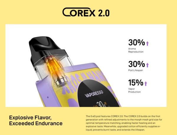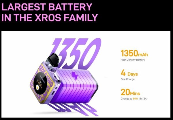 El Vaporesso XROS 4 Nano, es el primer dispositivo XROS que cuenta con una pantalla a color TFT de 1.3". Cuenta con la batería más potente de la familia XROS de 1350mAhcarga rápida de 2A, manejo con botones y airflow ajustable. La tecnología COREX 2.0 proporciona un sabor más rico y una vida útil prolongada y es compatible con todas la serie de pods XROS.